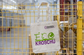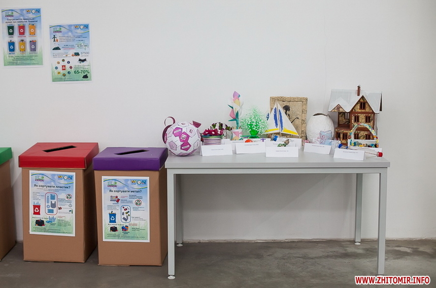 Працівники «КроШу» із задоволенням фотографувалися біля еко-фотозони, яку виготовили із відпрацьованих велосипедних дисків, лампочок і зелені. Повсюди на виробництві розмістили розроблені спільно з житомирською ГО «Цілком природно» інфографіку про сортування різних видів сміття. Крім того, тут розміщені 4 бачки для різного типу сміття. Найшвидше заповнюються баки для пластику – кожен з 3 тисяч працівників щодня випиває хоча б одну пляшку води або газованого напою.