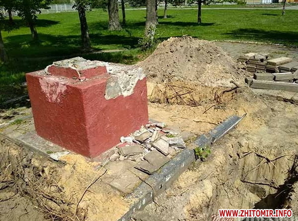 У районному центрі Романів Житомирської області 28 квітня на місці майбутнього басейну демонтували пам’ятник «Героям, які полягли в боях за свободу і незалежність нашої Батьківщини», а останків людей під стелою, яку довгий час вважали братською могилою, не виявили.