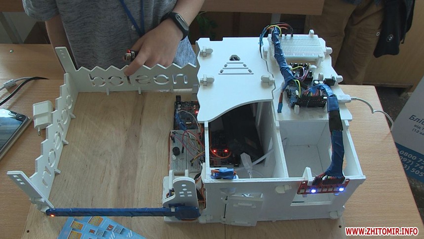 «Його можуть використовувати дизайнери, будівельники. У ньому стоїть система, яка відповідає за рух дверей та шлагбауму. Також у нас тут стоїть датчик газу, який у разі його виявлення подає сигнал. Є витяжка та датчик руху. Поки я його буду доробляти, скоріше за все поставимо Wi-Fi модуль, щоб ним можна було керувати з телефону», - ділиться вихованець дитячої школи робототехніки Олександр Постольник.