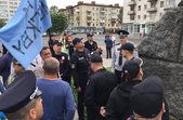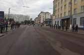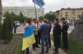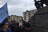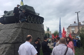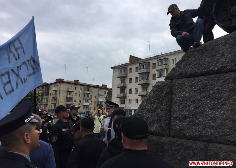 За інформацією журналіста Житомир.info, який знаходиться на майдані Перемоги, декілька активістів намагалися повісити на танк прапор з написом «На Москву». Поліція намагається їх заспокоїти.