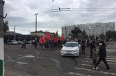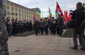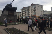 Зранку, 9 травня, на майдані Перемоги людно, ще до 9-ї години тут почали збиратися ветерани, їх родичі та активісти, аби взяти участь в урочистостях з нагоди 73-ї річниці перемоги над нацизмом у Другій світовій війні. Навколо танку розмістилися більше сотні людей: дехто стоїть з квітами, а дехто й з червоними прапорами. Також серед присутніх можна побачити і людей у військовій формі. Всі готуються до ходи.