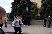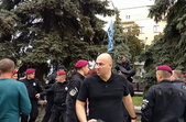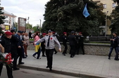 Вже на майдані Соборному хтось з учасників ходи намагався вирвати у них з рук прапор: виникла сутичка. З десяток поліцейських намагалися заспокоїти активістів.