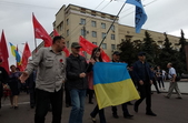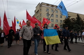 «Я думаю, що він (прапор) був навмисно принесений, щоб провокувати і, можливо, викликати якісь сутички, бійки. Але хвалити Бога, що крім невеличкої стусанини все обійшлося, велика подяка поліції, справилися, молодці. Марш миру відбувся, ветерани пройшли, ми разом з ветеранами, мешканці міста пройшлися. Тому у них був свій захід,у нас – свій», - сказала депутат.
