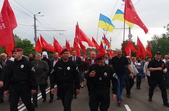активістами, які рухалися попереду колони з прапором «На Москву», та іншими