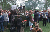 Як повідомляв Житомир.info, зранку на майдані Перемоги у Житомирі активісти намагалися повісити на танк прапор з написом «На Москву». Через нього після початку руху колони виникла сутичка, коли невідомий чоловік спробував вихопити стяг із рук активістів.