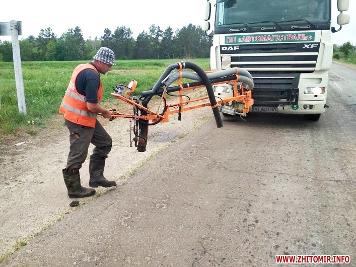 У Житомирській області розпочали робити ямковий ремонт за новим методом – повітряно-струменевим.