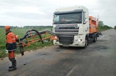«Підрядник ПП «Автомагістраль» виграв тендер та розпочав ямковий ремонт за новим методом – струменевим. Цей метод дозволяє видути всю пиль, далі струменева машина обробляє яму бітумною емульсією. Після цього дрібним щебнем задувають яму. Метод хороший, так як бітумна емульсія заливає усі тріщини», – сказав Роман Крисюк.