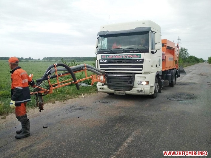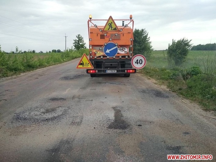 Наразі такі роботи проводяться на дорозі Житомир – Левків, а після завершення цієї ділянки, ямковий ремонт розпочнуть робити у напрямку Житомир – Озерне.