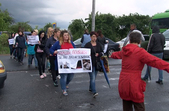 Зі своїми запитаннями мітингарі йдуть на зустріч з керівником місцевої прокуратури. Люди підозрюють, що до вбивства причетний не лише чоловік вбитої Юлії Козак, а і його друг та сестра, проте їх ніхто не затримав.