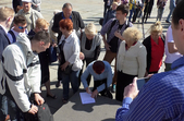 «Я прийшла на прийом до Сергія Івановича Сухомлина. Перший раз він відмінив прийом 8 травня і ось другий раз відмінив. Прийшла з порожньою каструлею, тому що 1400 грн пенсія ветерана праці України, а 1200 грн я заплатила за тепло. Мітинг до цього має відношення: ми не зможемо висунути своїх представників до влади, то от таке буде у нас, якщо ми не змінимо цей закон», - розповідає учасниця акції Тетяна Коловоротна.