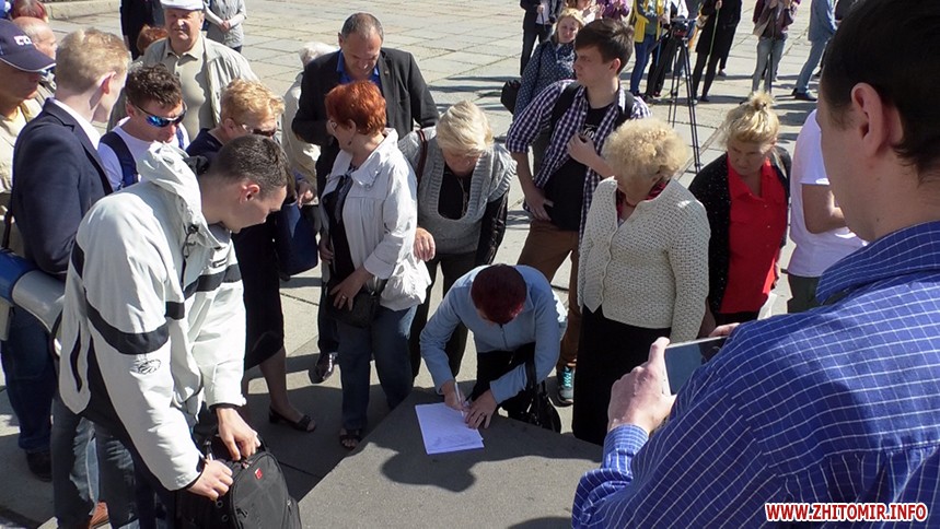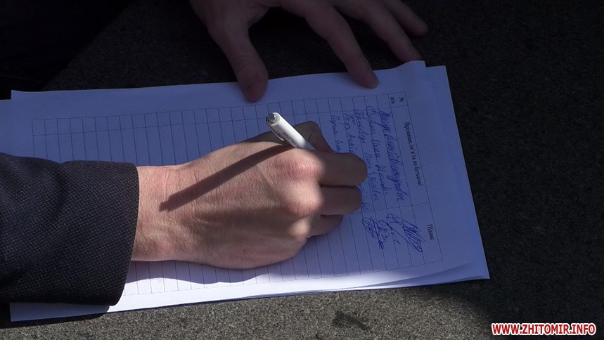 Зрештою, акція тривала трохи більше години. Наприкінці учасники збирали підписи під зверненням, в якому виклали усі свої вимоги. З ним планують йти на чергову сесію Житомирської облради за підтримкою депутатів.