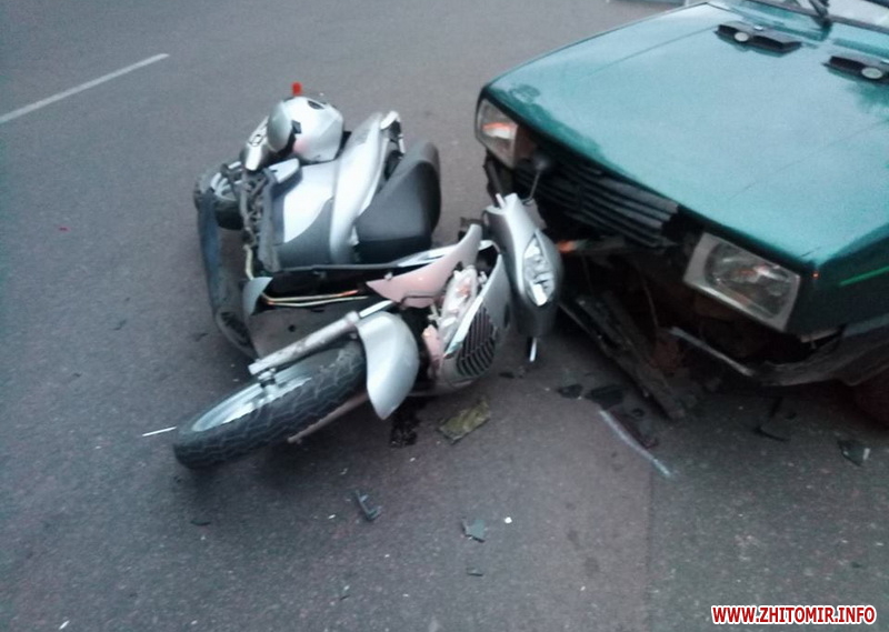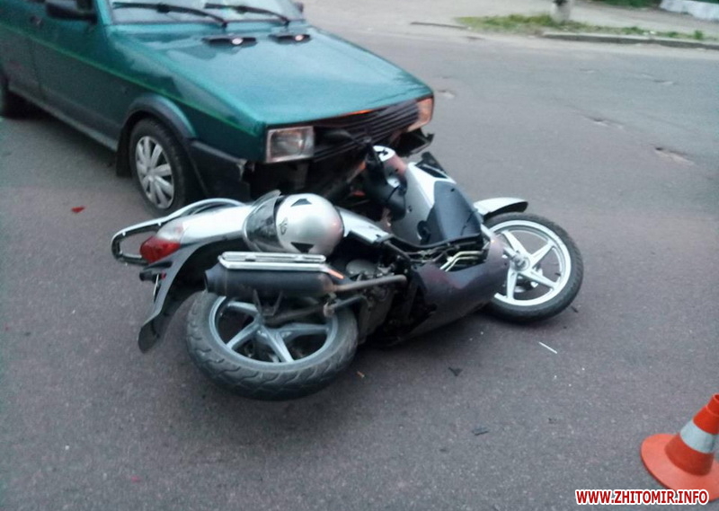 На Крошні в районі «баби Іри» в Житомирі увечері 15 травня зіштовхнулися легковик і скутер.
