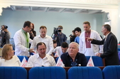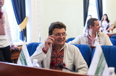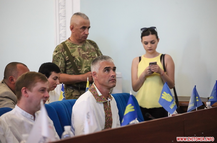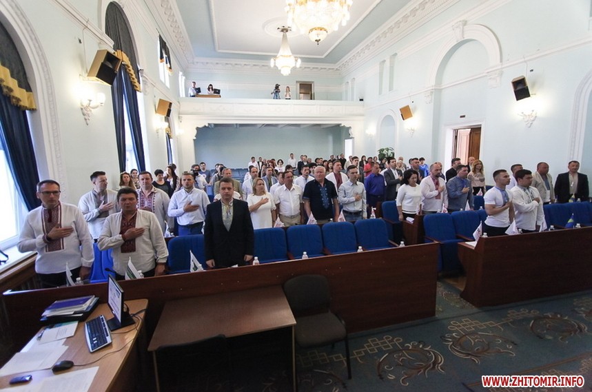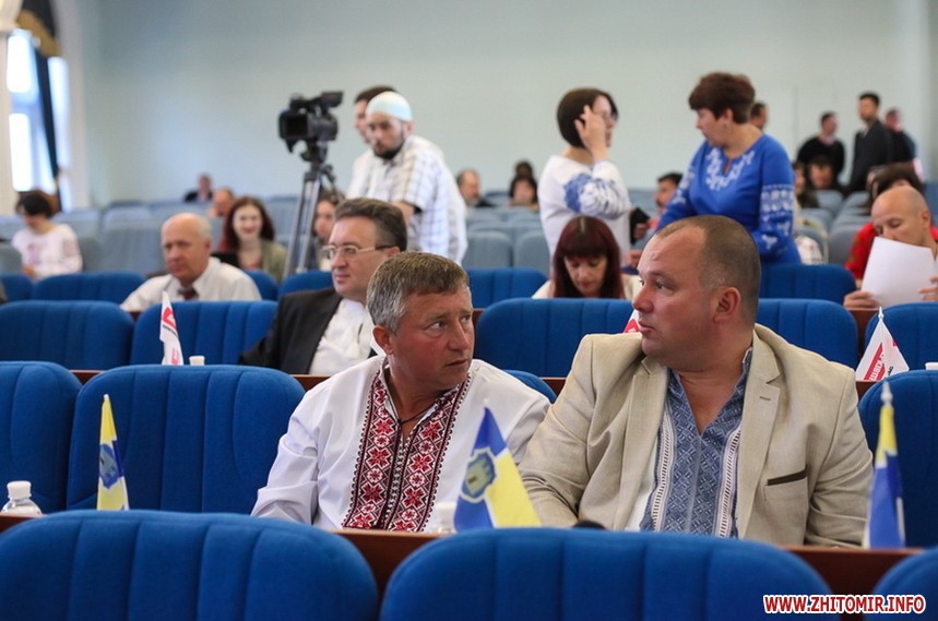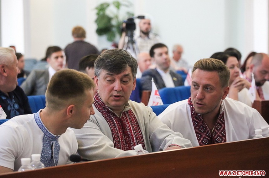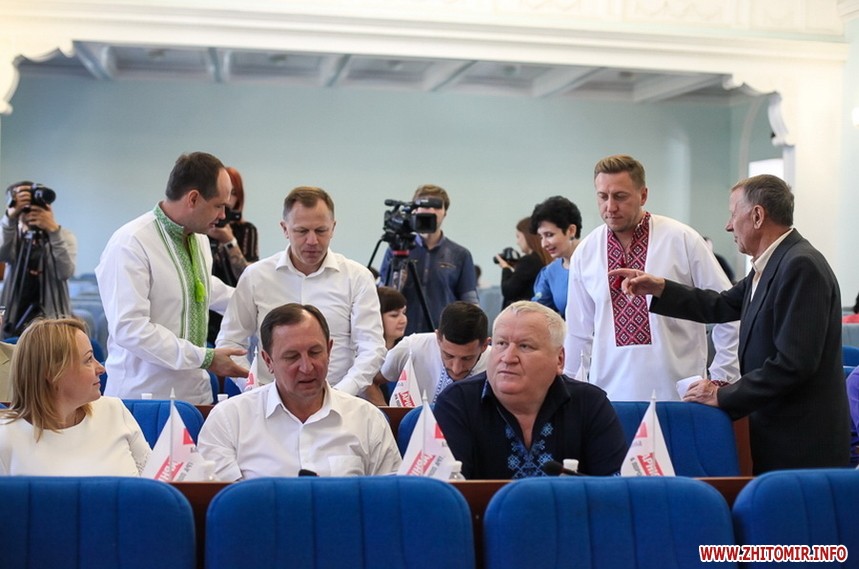 У День вишиванки, 17 травня, депутати Житомирської міської ради зібралися на позачергову сесію, у порядку денному якої було 6 питань, а голова фракції ВО «Батьківщина» Любов Цимбалюк наполягала, аби не вносилися додаткові. На початку сесії зареєструвалися 37 депутатів з 42.