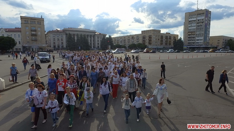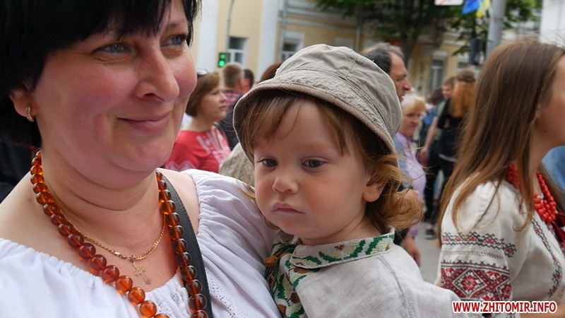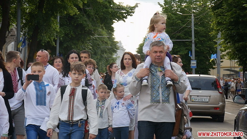 Кілька сотень житомирян, одягнувшись у вишиванки, йдуть святковою ходою центром міста, співаючи пісень та розповідаючи оточуючим, що вишиванка – це генетичний код українського народу. Білі, жовті, блакитні, з квітами, графічними візерунками, - усе це про вишиванки, в яких одягнуті учасники ходи. Кожен ладен розповідати про свою вишиванку годинами, особливо якщо вона дісталася від матері, дочки або ж просто пов’язана з незабутніми подіями.