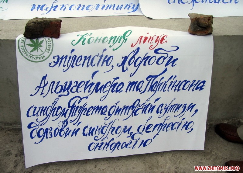 «Метою нашої акції є врегулювання контрольованого доступу українських пацієнтів до лікування канабісом та препаратами на його основі та необхідність проведення наукових досліджень компонентів коноплі. Коноплі легалізовані у США, Ірландії, Великій Британії, Норвегії, Італії, Франції, Німеччині, Греції, в Румунії та Польщі. На їх основі виробляються медичні препарати, які лікують обширний спектр хвороб, включаючи знеболювання на останніх стадіях важких хвороб. Ці препарати добре зарекомендували себе в Європі, вони добре допомагають людям і майже не мають побічної дії. Такі препарати не ввозяться і не використовуються в Україні, бо це підпадає під кримінал», - пояснив організатор акції, регіональний представник БФ «ВОЛНА» Юрій Боровий.