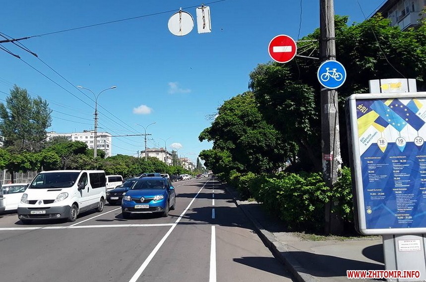 В Житомирі на вулиці Небесної сотні з’явилася розмітка велосмуги довжиною 200 метрів.
