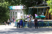 У середу, 23 травня, в парку Гагаріна досить багато бажаючих покататися на каруселях, деякі з них досі готують до експлуатації. Біля вищевказаних «гірок» помічений чоловік з пульверизатором і жовтою фарбою.