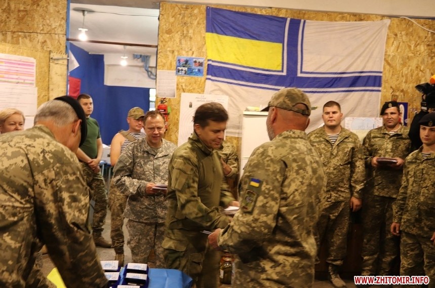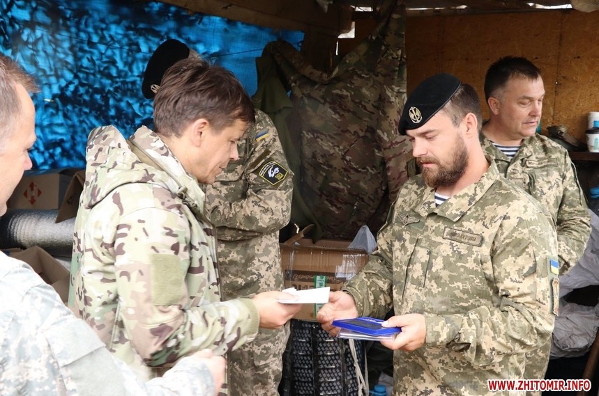 Мер Житомира Сергій Сухомлин та його радник, депутат міської ради від Блоку Петра Порошенка Олександр Черняхович поїхали на передову до морських піхотинців.
