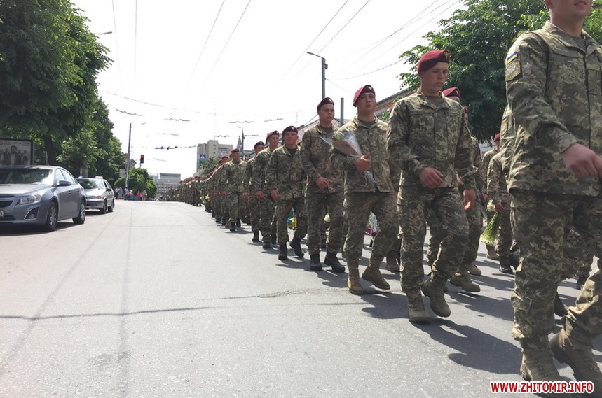 Нагадаємо, об 11:00 в центрі Житомира, на майдані Соборному, почалися урочистості за участю 1,5 тисячі військових, які виконували бойові завдання у зоні проведення антитерористичної операції (зараз – операція об’єднаних сил).