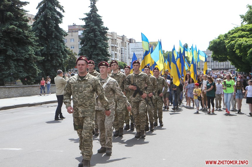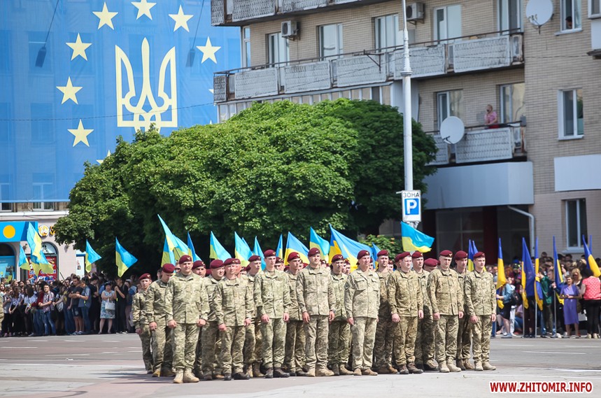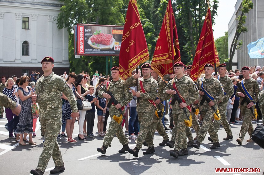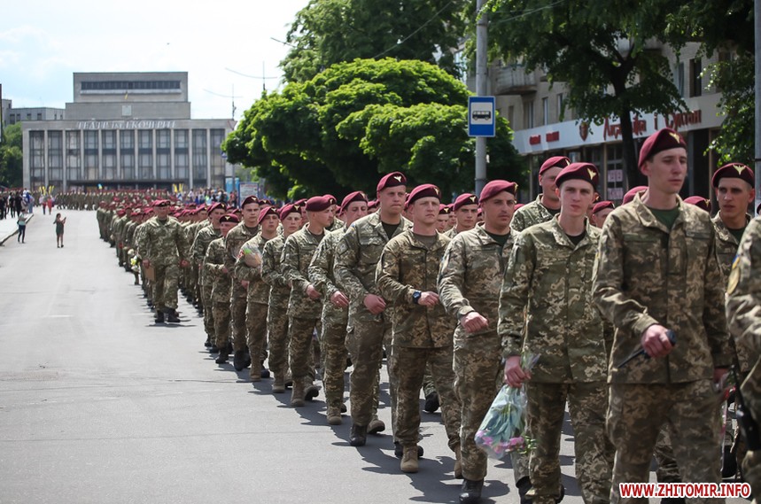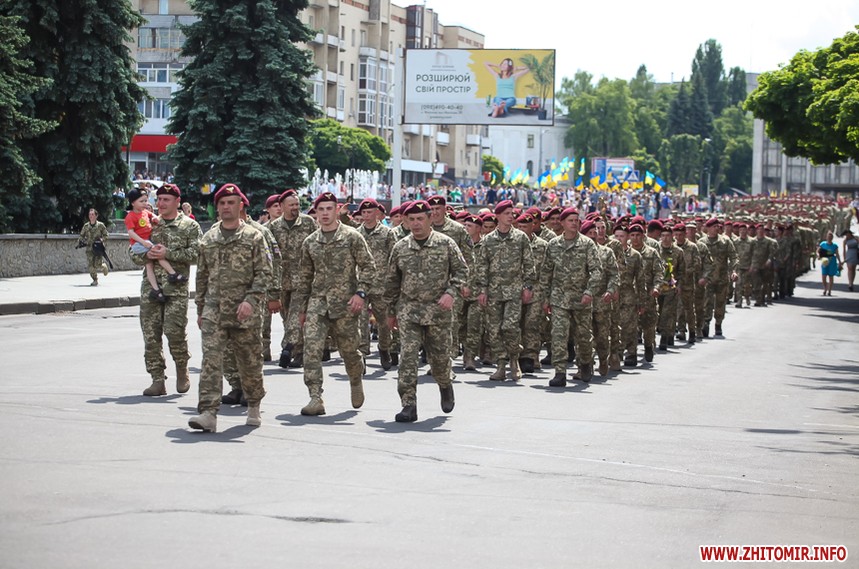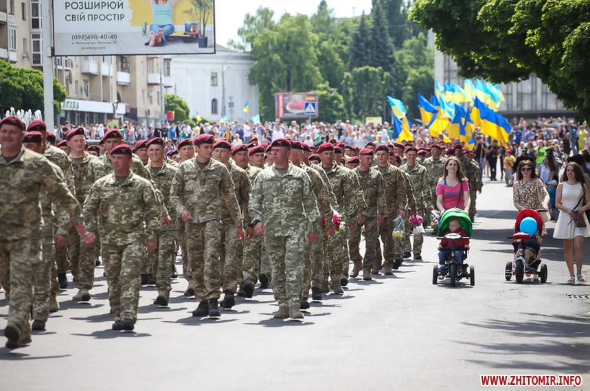 24 травня Житомир вшановував військовослужбовців Десантно-штурмових військ ЗСУ, які повернулися після виконання бойових завдань в районі проведення операції об’єднаних сил (раніше – АТО).