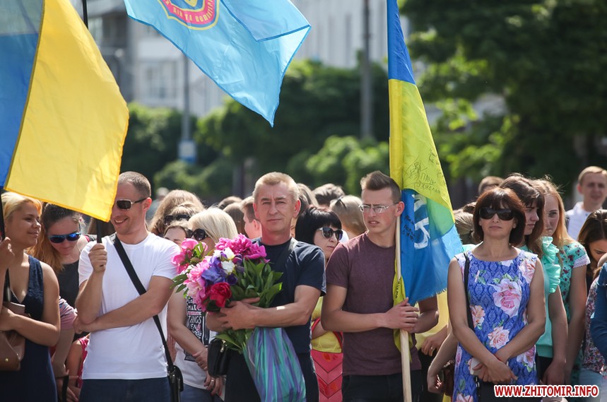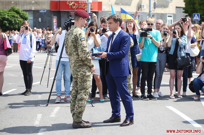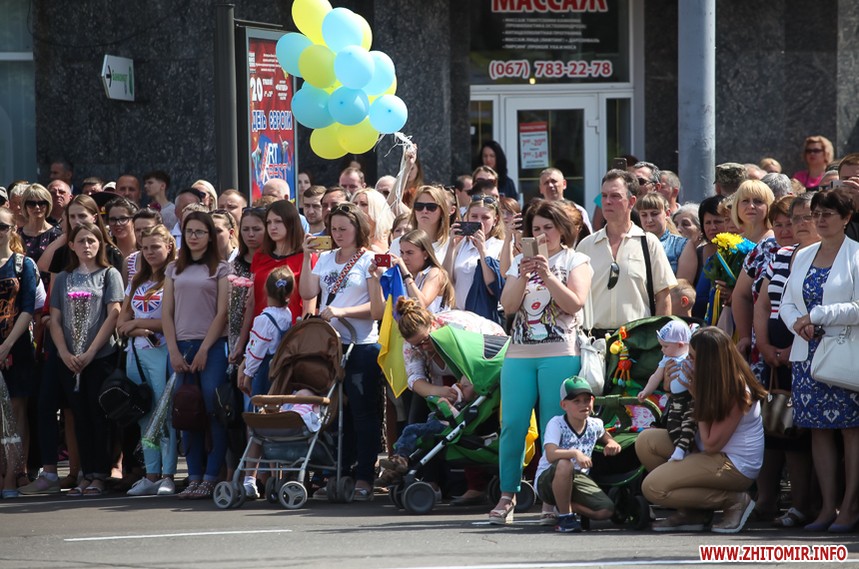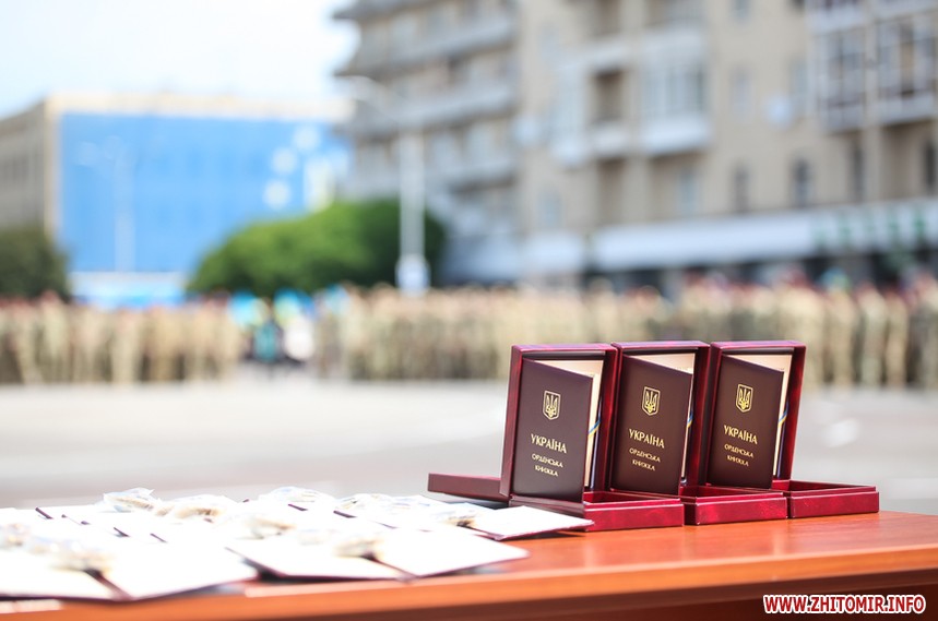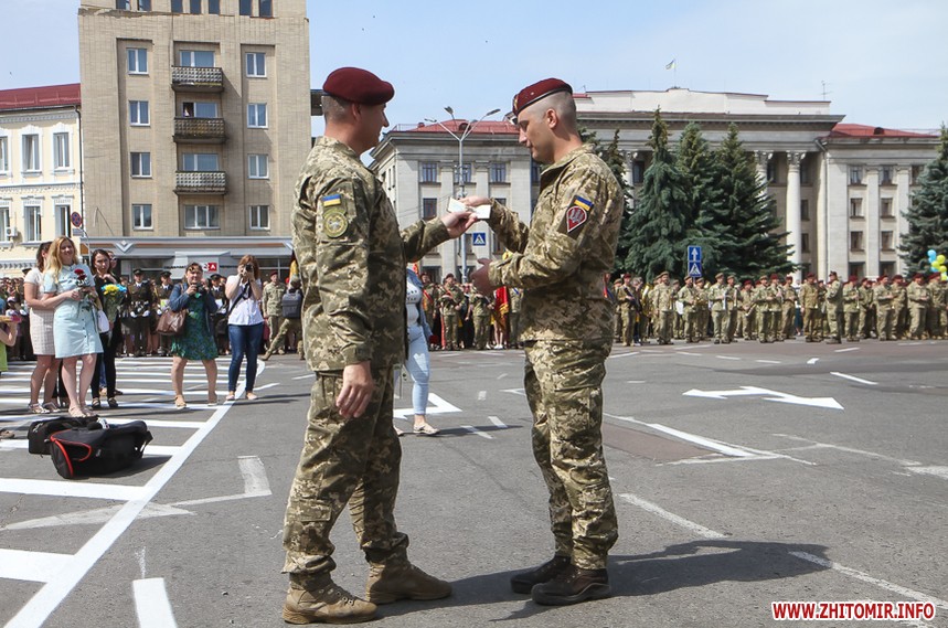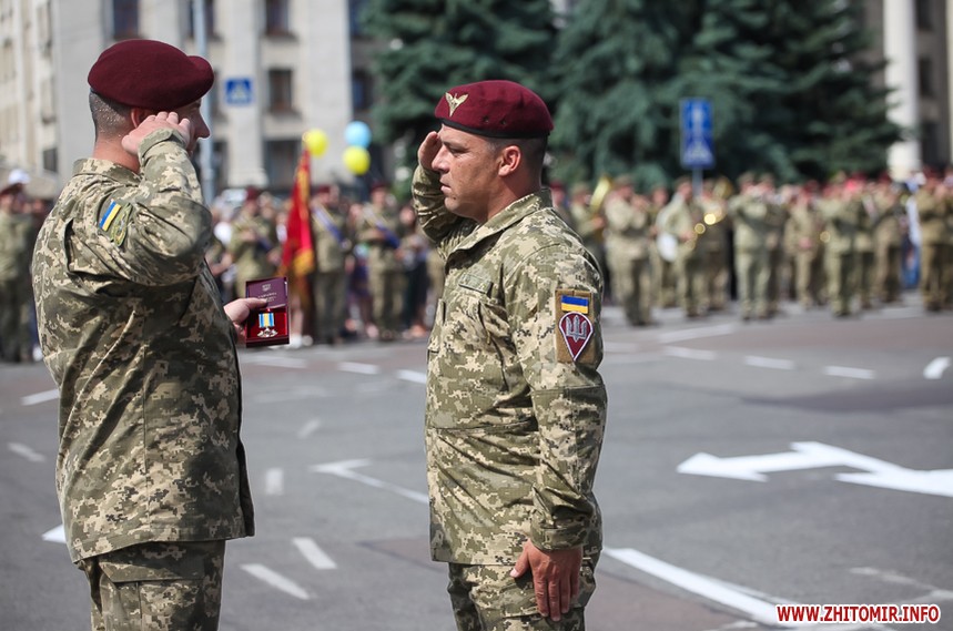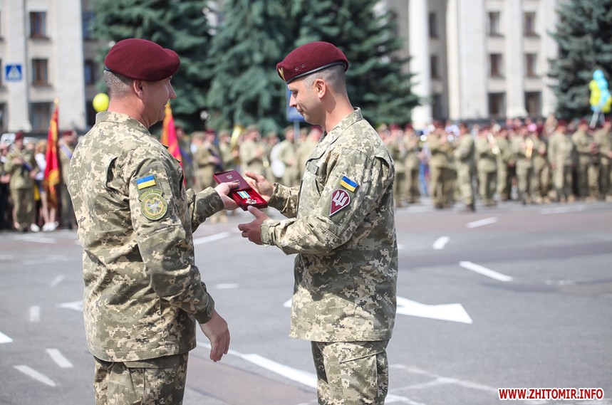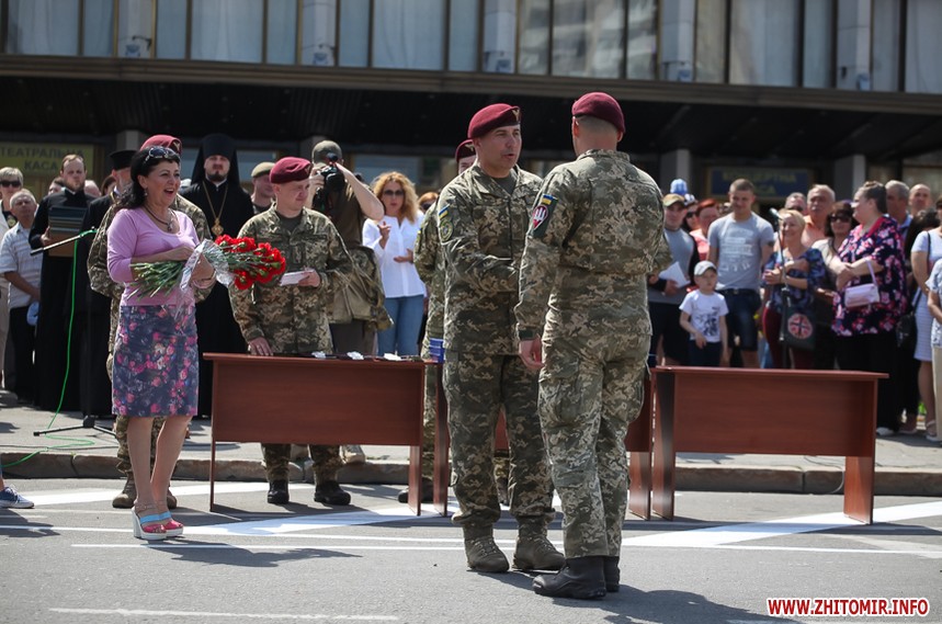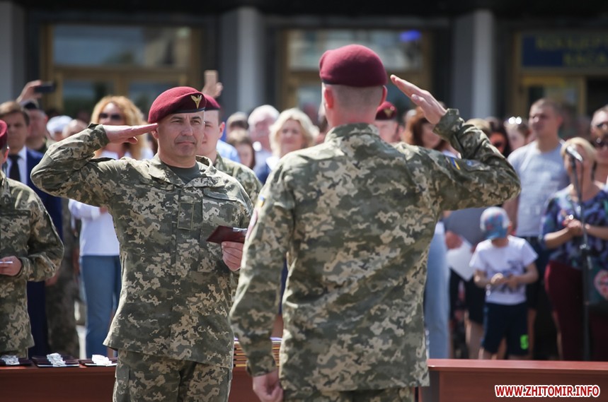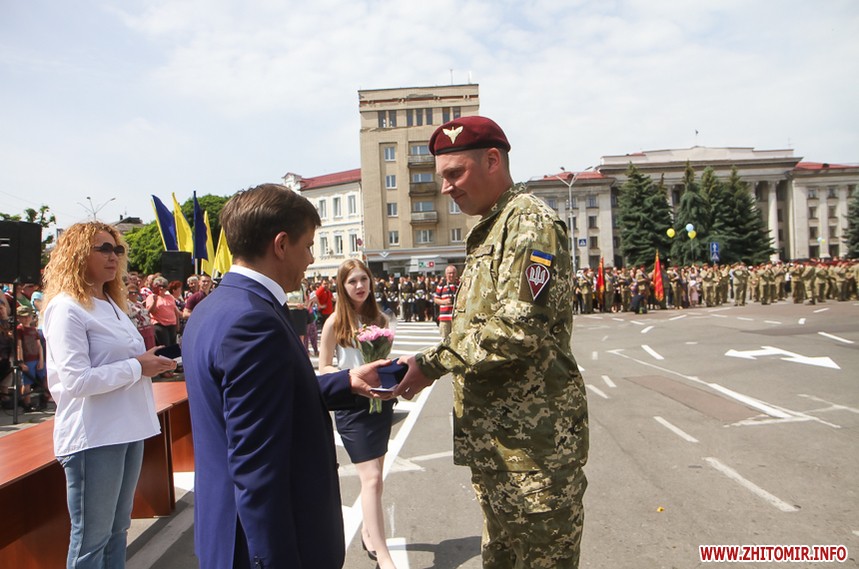 Привітати десантників на майдан Соборний прийшли кількасот людей. Нагороди та відзнаки воїнам вручали заступник командувача ДШВ полковник Юрій Галушкін та мер Житомира Сергій Сухомлин.