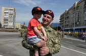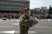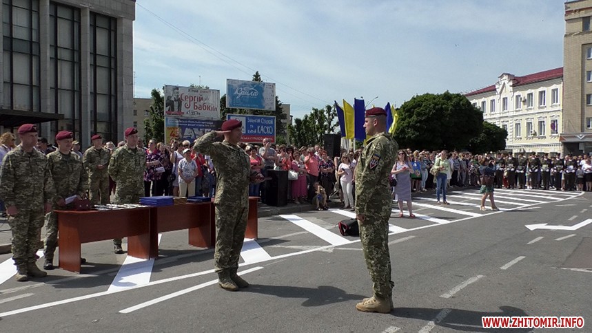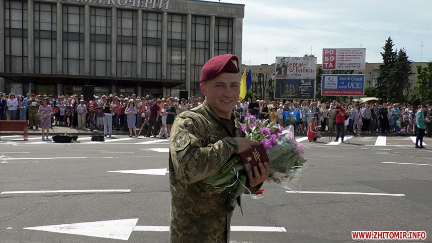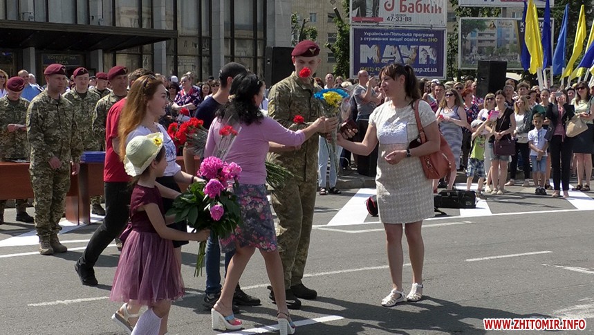 Оплески, квіти та військовий оркестр – на Соборному майдані у Житомирі 24 травня сотні людей зібралися на честь повернення із зони бойових дій славетної 95-ї десантно-штурмової бригади.