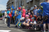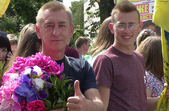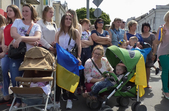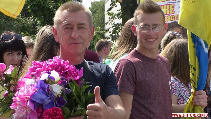 З самісінького ранку у центр міста з різних регіонів України почали з’їжджатися родичі бійців, які півроку чекали на цю зустріч. З оберемком півоній і прапором стоїть Володимир Зуєв, який з родиною приїхав з Хмельниччини.