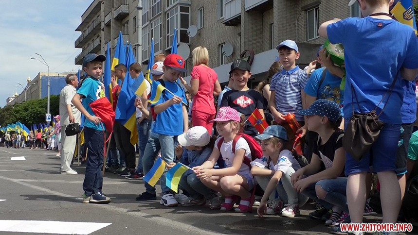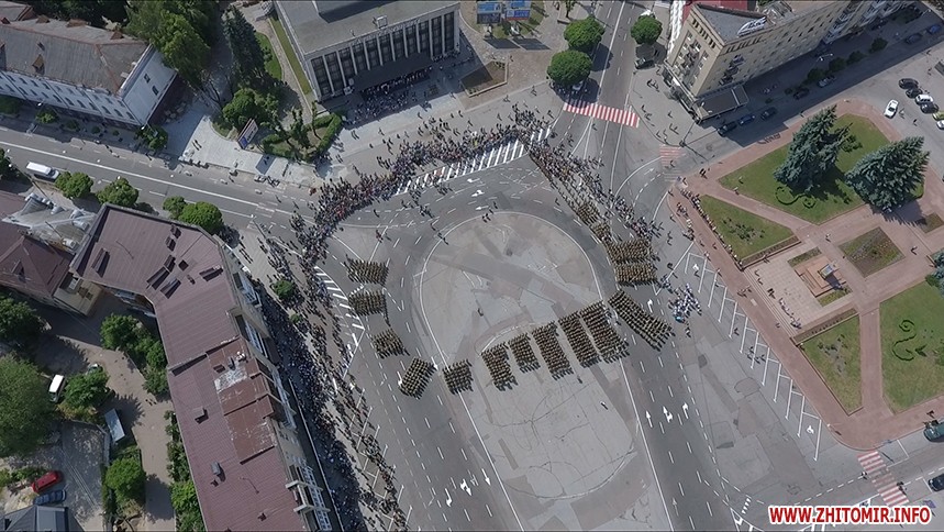 Прямуючи вулицею Перемоги до проспекту Миру, бійці несли портрети восьми загиблих героїв, які так само сьогодні мали б крокувати Житомиром, але загинули під час виконання бойового завдання на сході України.
