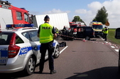 «Як повідомляє місцевий інформаційний сайт poranny.pl, аварія сталася зранку 23 травня у районі Гути (Граєвський повіт). Попередні висновки показують, що водій пасажирського авто виїхав на протилежну смугу і зіткнувся з вантажівкою Mercedes. Місцеві ЗМІ повідомляють, що два пасажири були доставлені до лікарні в місто Граєво, а водія транспортували вертольотом до лікарні в місто Бялисток», - інформує Твій Романів.