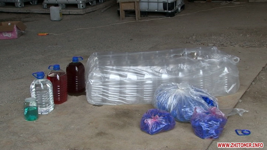 «Слідчим управлінням ГУ ДФС України в Житомирській області під процесуальним керівництвом прокуратури Житомирської області здійснюється досудове розслідування кримінального провадження, яке зареєстроване за частиною 3 статті 204 Кримінальний кодекс України. Виявлено підпільний міні-завод по виготовленню спиртової продукції. Даний спирт виготовлявся з технічної рідини, яка використовується як омивач для скла автомобілів. Даний завод тільки почав свою діяльність. Якщо подивитися на самому заводі, то ще навіть повністю обладнання не було змонтоване. Тобто, він щойно почав діяльність. На даний час місця реалізації встановлюються. Але даний спирт вони починали реалізовувати з Житомирської області, але також переходили на межі усієї України», - каже перший заступник начальника головного управління ДФС у Житомирській області Іван Гілета.