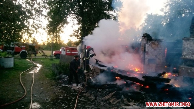 «Ними з’ясовано, що через пізнє повідомлення про пожежу, вогнем повністю були охоплені дерев’яна оселя та шлакоблочна господарча будівля. Дах допоміжної будівлі, на той момент, вже впав у середину. Керівник гасіння пожежі залучив на допомогу відділення вогнеборців 8-ї державної пожежно-рятувальної частини. До прибуття бійців ДСНС, 67-річний сусід допомагав господарям виносити речі із палаючих будівель. Внаслідок чого, за попередньою інформацією, отримав опіки рук та тулуба. Медики госпіталізували травмованого до Коростенської центральної районної лікарні. О 20:30 рятувальники локалізували пожежу, а о 23:15 – ліквідували. Вогонь знищив обидві будівлі та фахівцям ДСНС вдалося відбити полум’я від поруч розташованої дерев’яної сінника. На ліквідацію надзвичайної події залучалося 6 вогнеборців та 2 пожежні автомобілі. Попередня причина пожежі – коротке замкнення в електромережі. Господиня розповіла, що побачила як загорілася проводка. Остаточна причина наразі встановлюється», - йдеться у повідомленні.