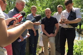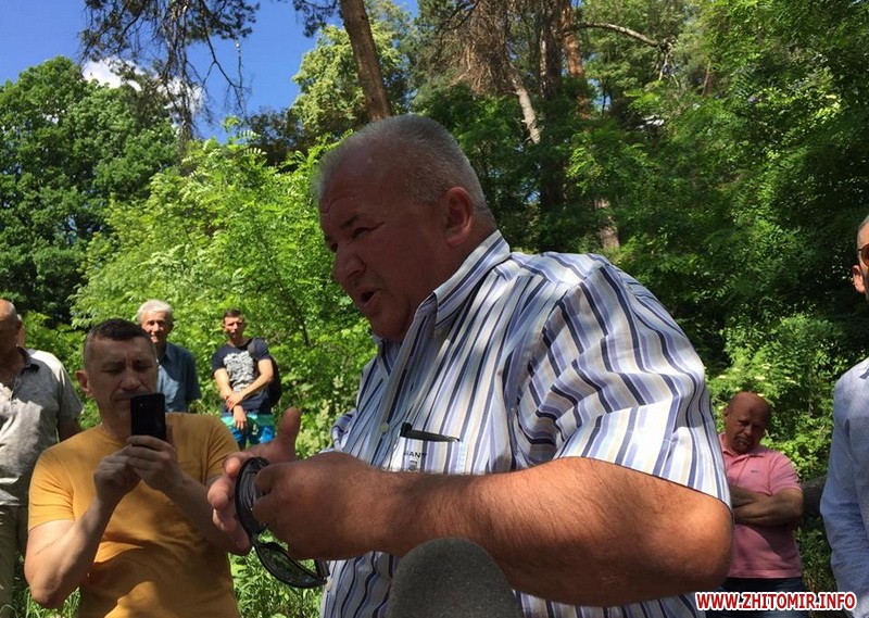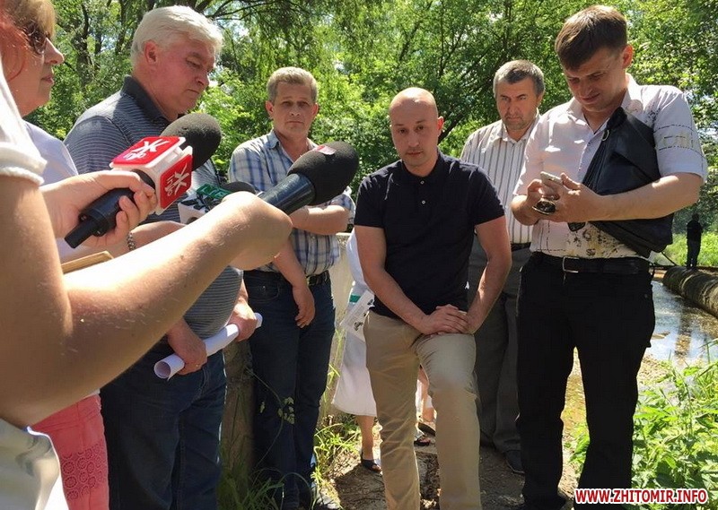 Також серед присутніх є й представники спілки рибаків, які уточнили, що у п’ятницю, 25 травня, було зафіксовано рибоохоронним патрулем, що з водоканалу в річку Тетерів витікає брудна вода.