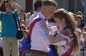Якщо для наймолодших школяриків таке свято дзвоника перше, то для випускників він лунає востаннє. Тому на шкільну лінійку 11-класники чимчикують через вишивані рушники та обереги, що символізують перехід у нове - доросле життя.