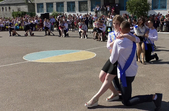 У ЗОШ №21 на вулиці Святослава Ріхтера його відзначали з короваєм, жовто-блакитними кульками, віршами, піснями і танцювальними номерами. Причому танцювали не лише учні, а й учителі.