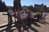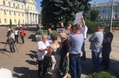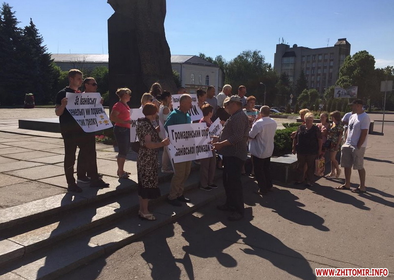 Перед початком сесії Житомирської обласної ради, яка запланована на 10 годину 31 травня, перед адмінбудівлею на майдані Корольова зібрались кілька десятків протестувальників.