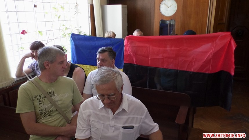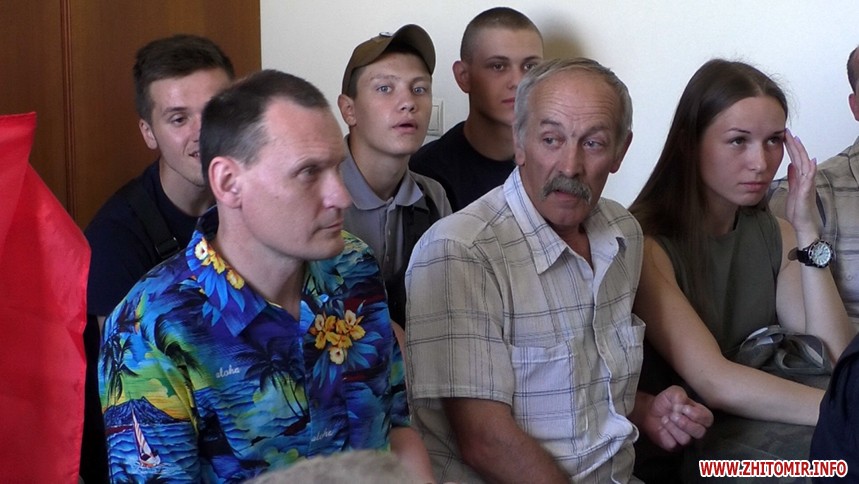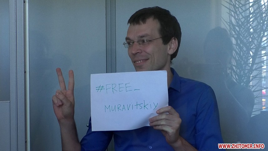 У Корольовському суді Житомира продовжується розгляд справи щодо блогера Муравицького, якому інкримінують державну зраду. 1 червня традиційно на слухання справи прийшли прихильники блогера та проукраїнські активісти. Останні тримають в руках жовто-блакитний та червоно-чорний стяги. Обвинувачений сьогодні теж не з порожніми руками, а з імпровізованим плакатом із написом «#FREE_Muravitskiy». Розпочинається засідання з 20-хвилинним запізненням і не в повному складі з боку сторони захисту обвинуваченого: відсутній один із адвокатів Муравицького – Андрій Доманський. Проте це не завадило проведенню засідання, позаяк усі сторони погодились розглядати справу за його відсутності.