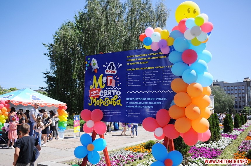 Цьогоріч найбільший виробник морозива в Україні - ПАТ “Житомирський маслозавод” - дещо змінив формат святкування. Всю територію, яка знаходилась на майдані Корольова та Новому бульварі, було умовно поділено на дві великі локації з величезною кількістю наметів: атракціони та парк розваг. Купуючи будь-яке морозиво компанії «Рудь» на самому Святі, гість отримував квиток. Він і був своєрідною перепусткою «в зону» активності. Під час Свята дітям запропоновано близько 20 видів розваг: це і творча майстерня, і батут, дартс, шалені фрукти тощо.