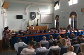 У залі, крім керівництва міста, присутні учасники АТО, військовослужбовці ЗСУ, добровольці, родини загиблих героїв, волонтери.