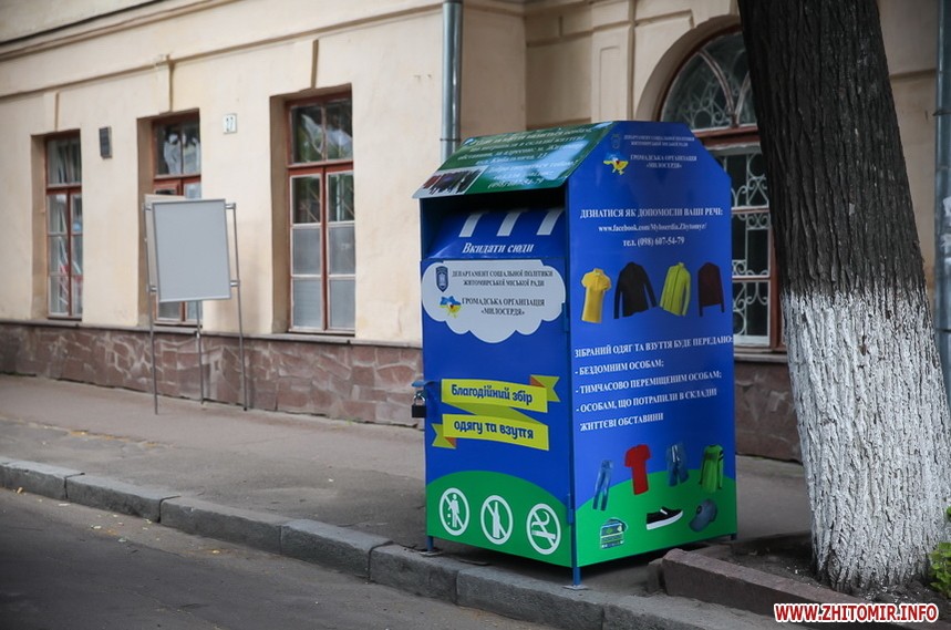 У рамках урбаністично-культурного фестивалю «Майстерня міста», який розпочався 6 червня на вулиці Пушкінській у Житомирі, громадська організація «Милосердя» встановила скриньку для збору одягу та взуття для нужденних.