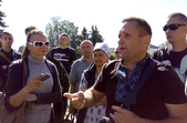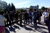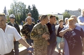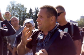 «На 14 годину сьогодні будуть збори із перевізниками, їх пальцем посварять, скажуть: «Ну, ну, ну! Треба возити», а вони в камеру скажуть: «Будемо возити, звичайно, будемо возити»... Хто може – підходьте сьогодні на 14 годину, потім розповсюдьте інформацію: до чого домовились», – закликав голова ГО «Атошник» Віктор Камлук.