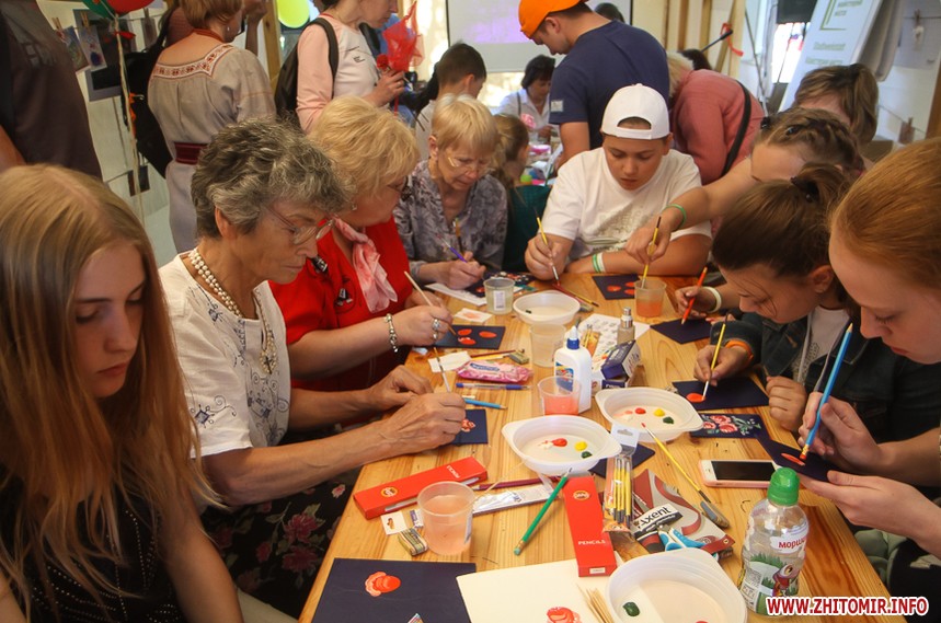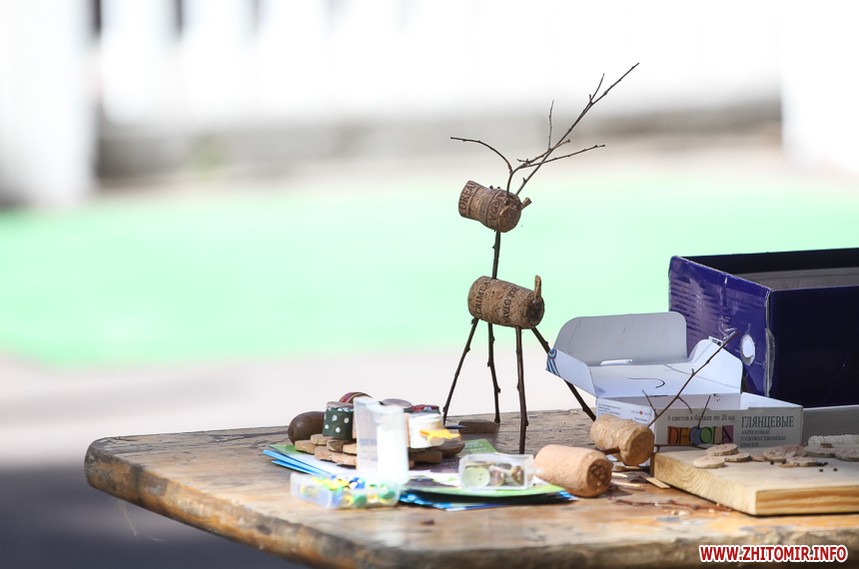 Так, близько 15 години 7 червня в наметах неподалік житомирської водонапірної вежі всі бажаючі робили оленів з корків, троянди з паперу, літачки з паличок для морозива, садові меблі з використаних шин, ліпили обереги з червоної глини.