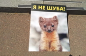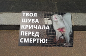 Учасники акції тримають гасла «Я не шуба», «Твоя шуба кричала перед смертю» та інші.