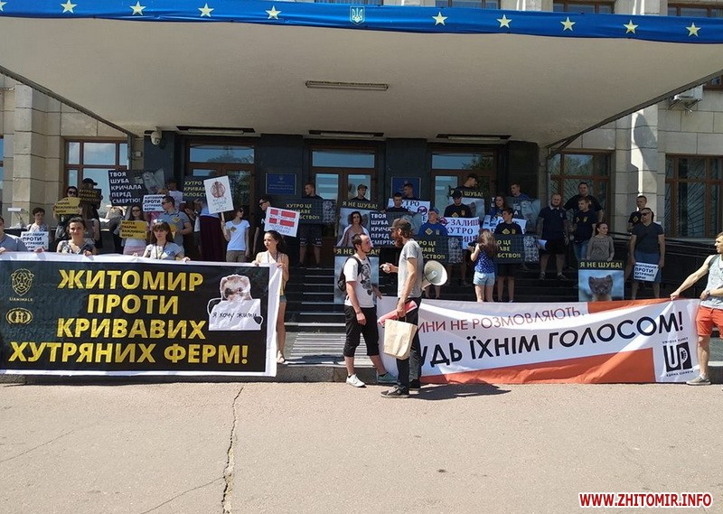 У центрі Житомира, на сходах облдержадміністрації, 10 червня проходить акція протесту «Житомир проти кривавих хутряних ферм!».