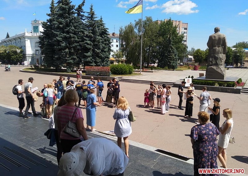 Люди зібрались о 12.00, щоб висловити протест проти будівництва у Житомирській області норкових ферм.
