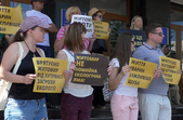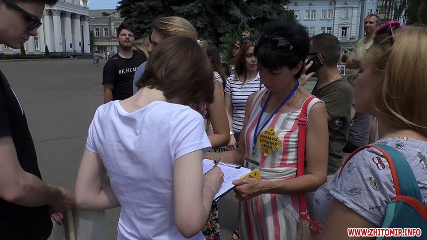 «Ми не можемо допустити, щоб заради чиєїсь гордині та статусу забруднювалась екологія та вбивалися десятками тисяч тварини. Європа забороняє цей кривавий бізнес, бо це страшно, не гуманно, це боляче, це по-звірячому. Ми проти пушної ферми, висловіть свою позицію, приєднуйтесь до нас. Потрібно, щоб усі, хто підписав цей кривавий меморандум, знали це. У них не вистачило сьогодні сміливості у свій вихідний день витягнути свої зади та прийти до нас поспілкуватися з населенням України, я не кажу тільки про житомирян. Я приїхала з Києва і буду приїздити сюди доти, доки цей меморандум не буде розірваний», - розповідає учасниця акції Юлія Петренко.