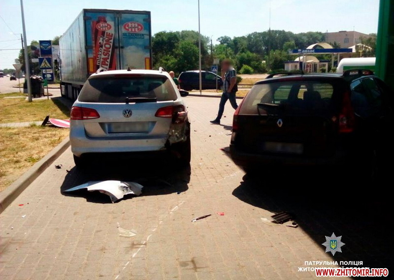 Зранку 11 червня у Житомирі на проспекті Незалежності сталася ДТП за участі автомобіля Renault та Volkswagen.