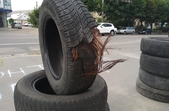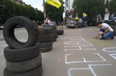 До адмінприміщення Служби автомобільних доріг у Житомирській області 18 червня знову принесли шини.