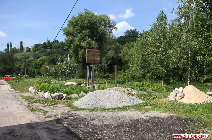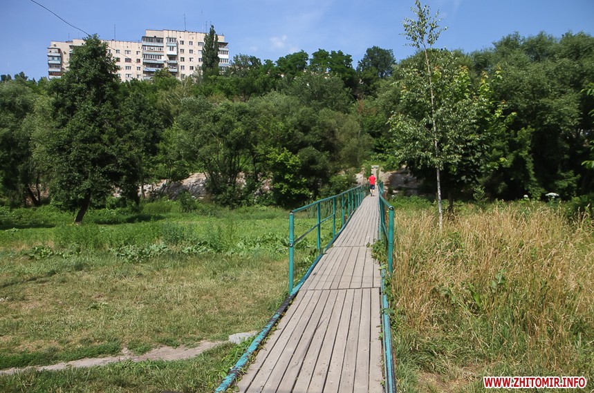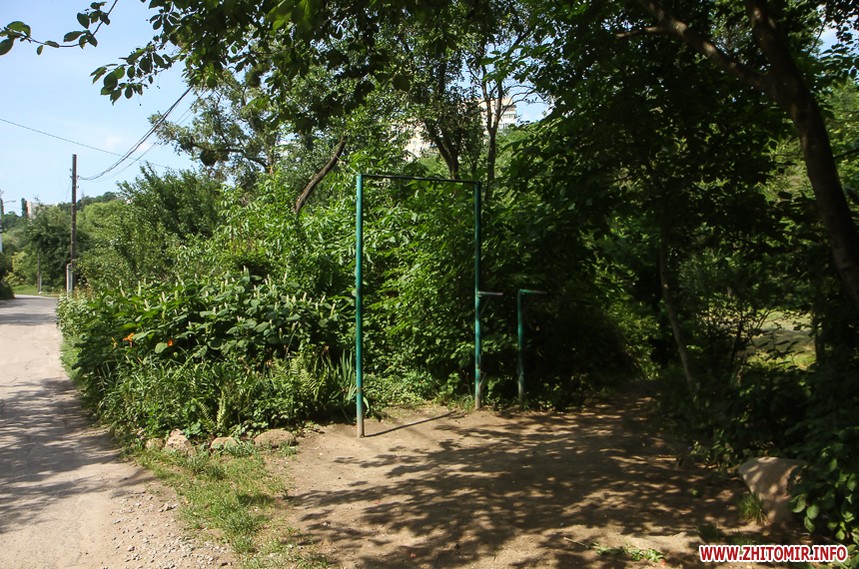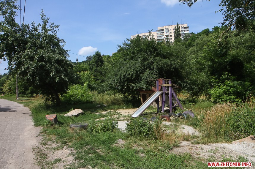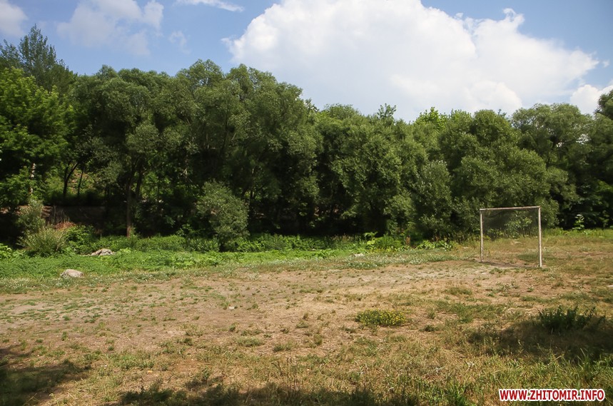 Тут облаштоване футбольне поле та кілька турніків. З протилежного берега річки видно скелі, будівлю обласного архіву та шпилі собору.