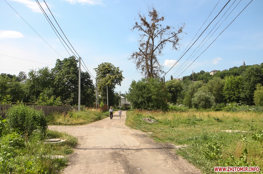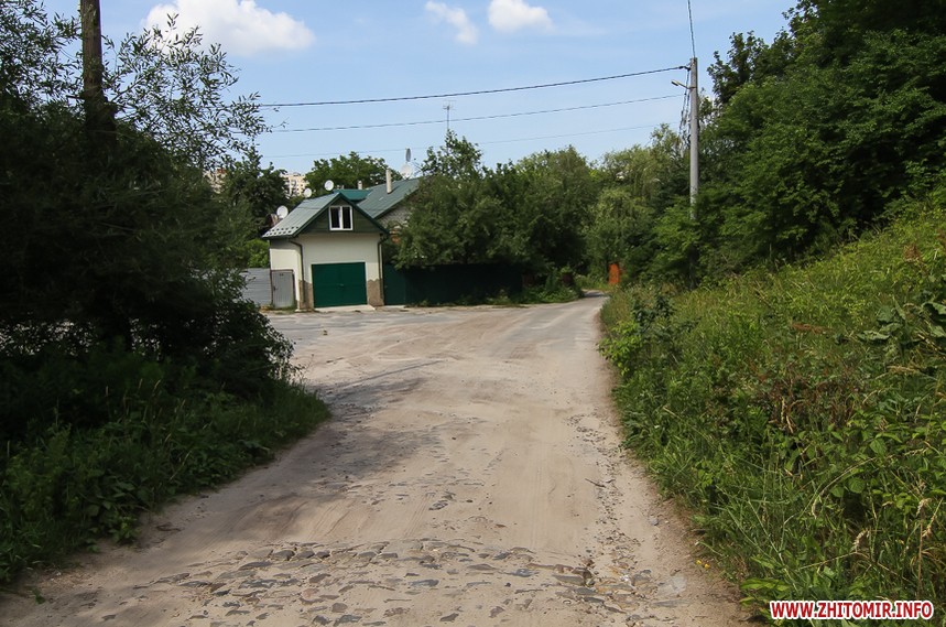 Вулиця починається з бруківки, а вже за кілька десятків метрів починається асфальт.