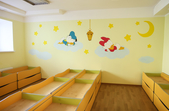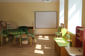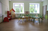 У кожній групі облаштований буфет з спеціальними столами, умивальником та бойлером. Тут є інтерактивні дошки та проектори, телевізори, сучасні дитячі меблі. У спальнях - двоярусні ліжка. У туалеті - кабінка для дорослого та дитячі кабінки, закриті з боків.